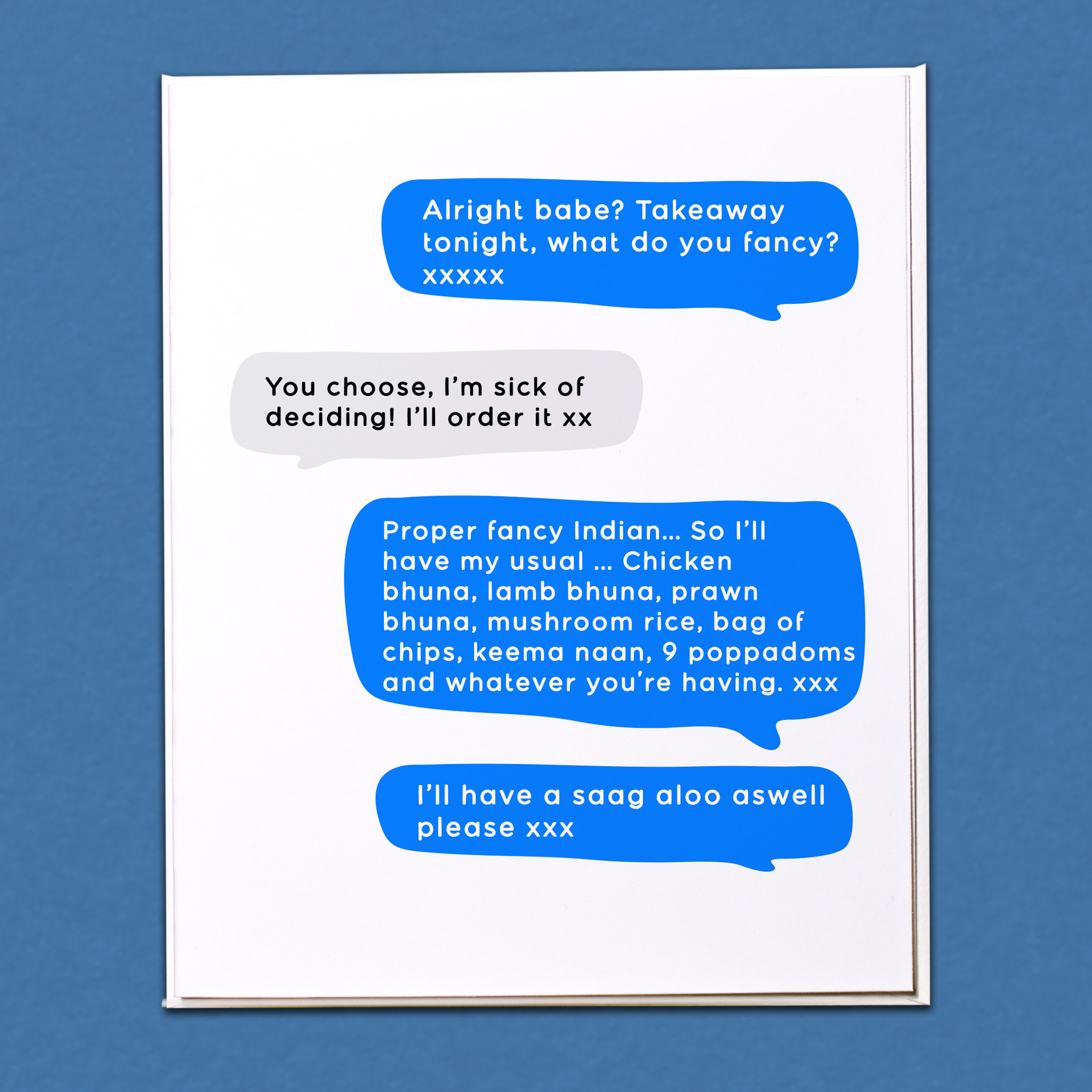 Alright babe? Takeaway tonight Card