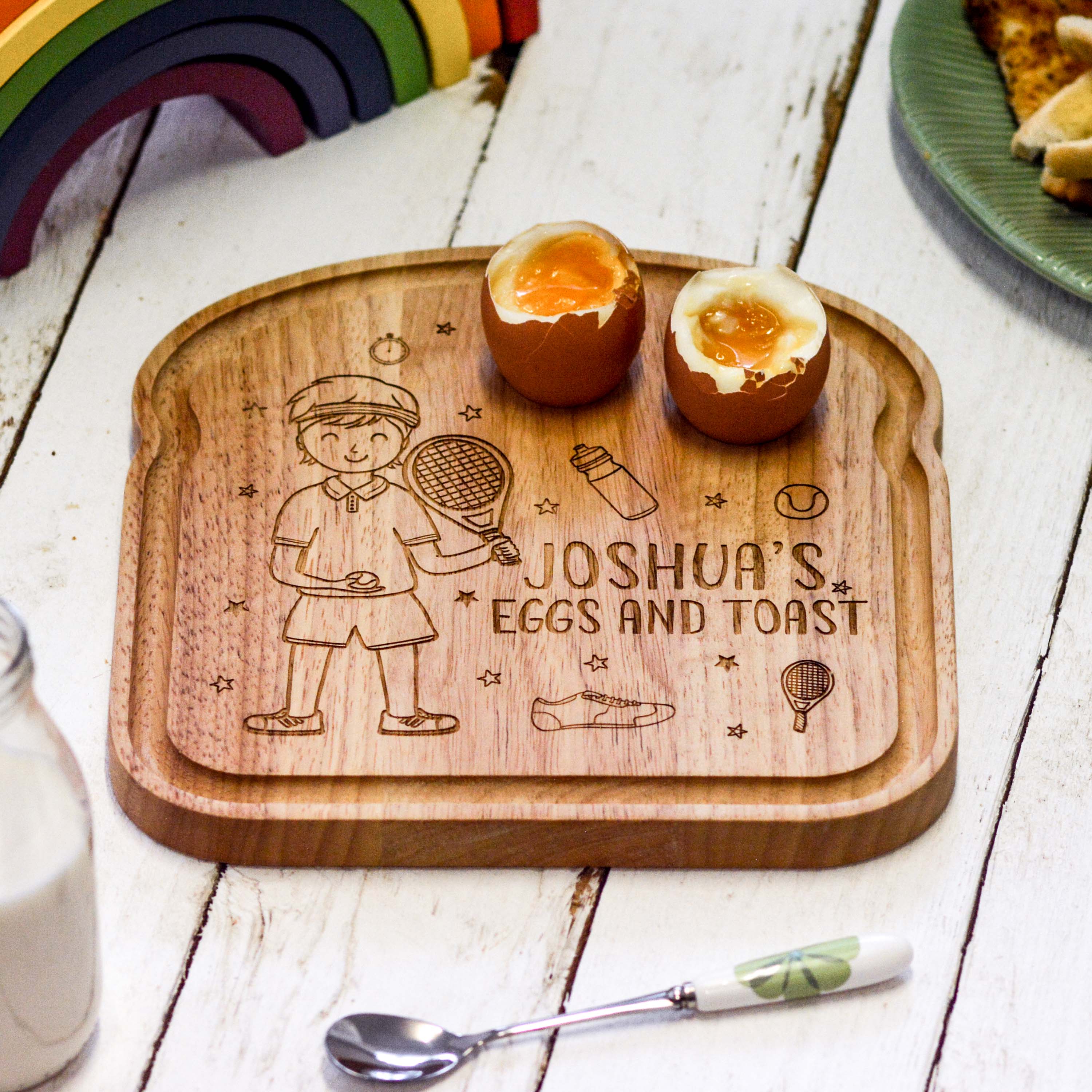 Personalised Breakfast Egg Board – Tennis Boy