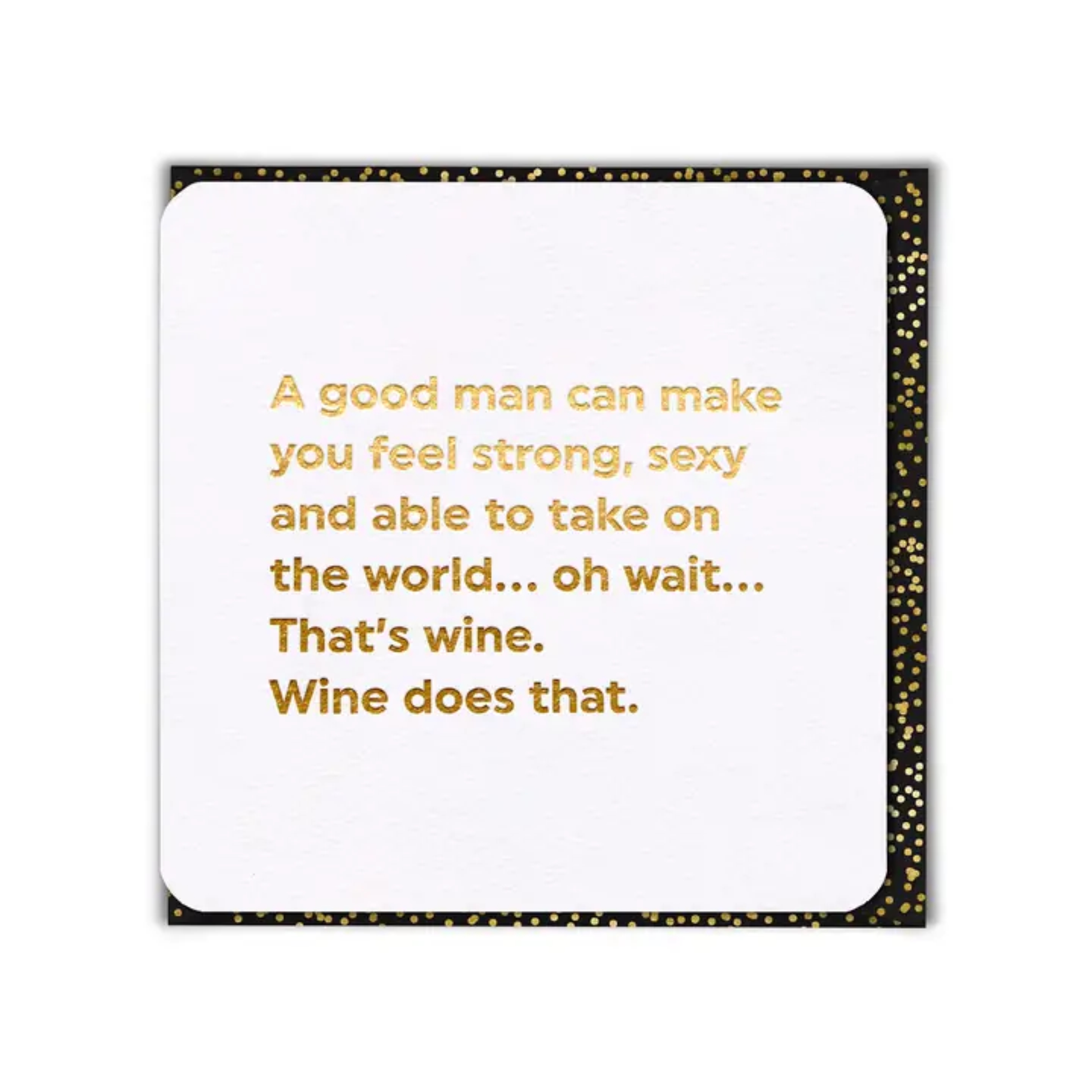 Prepare to spread some humour in style with our award winning ‘Quotish’ range of funny greeting cards. These humour cards feature gold foiled lettering on a luxurious white board. The cards are printed and die cut in the UK on high-quality, sustainable FSC Accredited card stock. The card measures 140mm x 140mm. They are blank inside and come cello wrapped with a beautiful and very stylish black and gold envelope.